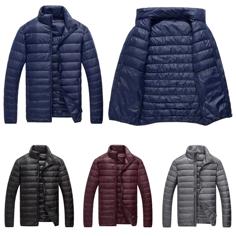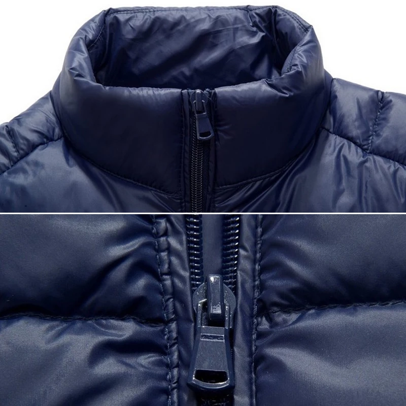 Пол: мужчинМатериал: полиэстерНаполнитель: белый утиный пухТип ткани: плотная тканьВоротник: воротник-стойкаТип узора: однотонныйДлина одежды: обычнаяУкрашение: карманы; МолнииСодержание пуха: 85%Цвет: темно-синий, армейский зеленый, королевский синий, винно-красный, черный, серыйРазмер: M,L,XL,2XL,3XL,4XL,5XL