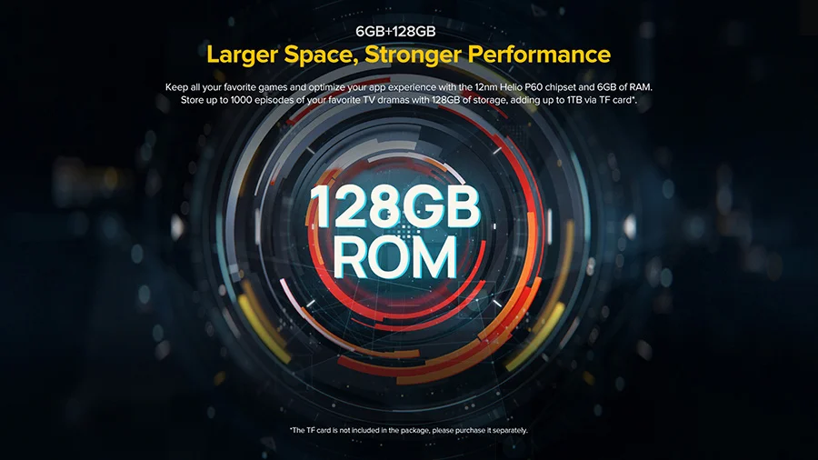 Храните все ваши любимые игры и оптимизируйте свой опыт работы с набором Микросхем Helio P6O 12 нм и 6 ГБ оперативной памяти. Храните до 1000 серий ваших любимых телевизионных драм с 128 ГБ памяти, добавив до 1TBvia tf-карта».