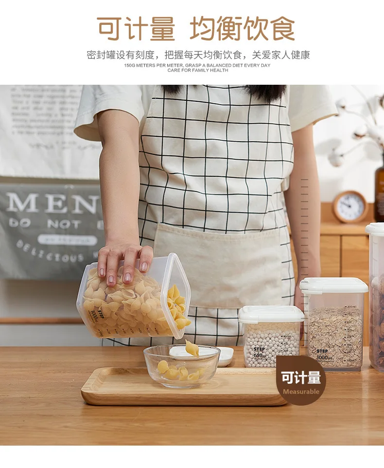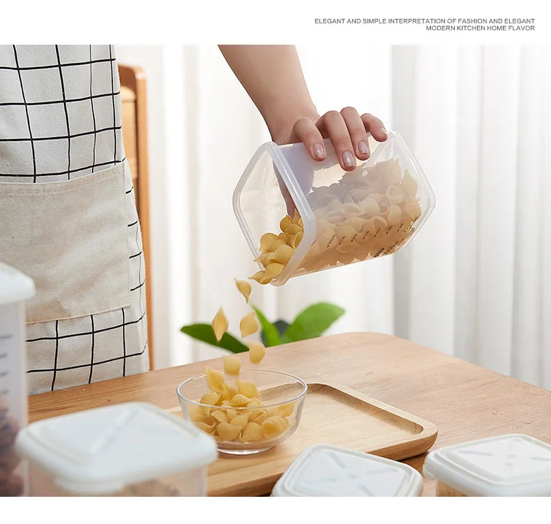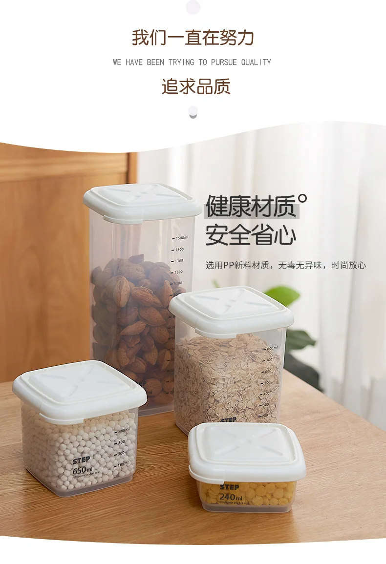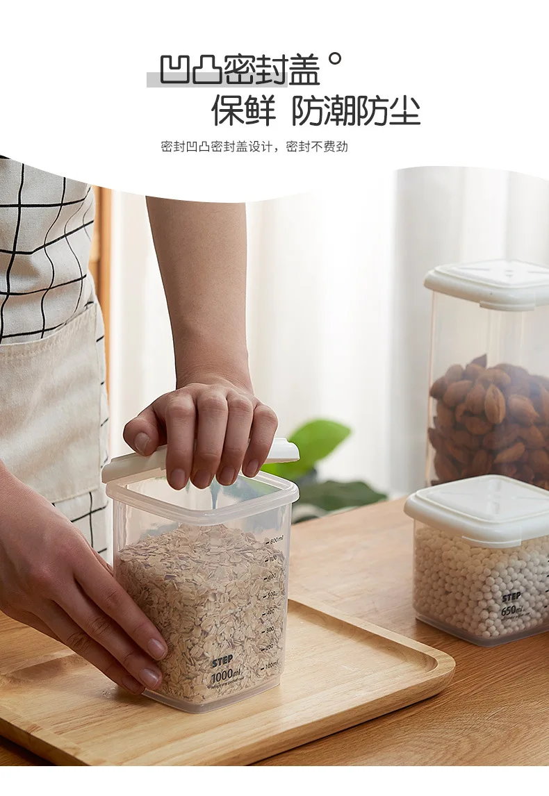 Вместительная Бытовая зернистая коробка для хранения, кухонная влагостойкая прозрачная со шкалой, банка для хранения сухой пищи