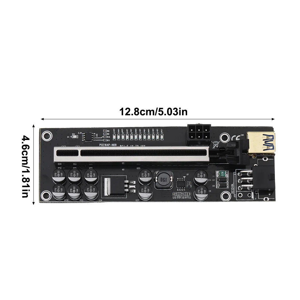 Опишите:10 конденсаторов: Эта плата адаптера PCI-E предназначена с 10 конденсаторами для обеспечения нормальной и стабильной работы платы.Светодиодный индикатор: Эта плата расширения PCI-E проста в использовании, есть 13 светодиодный индикатор, чтобы показать рабочий статус.6-pin источника питания: Этот адаптер PCI-E доска использует 6-pin интерфейс для источника питания, зависит от материнской платы.Кабель USB 3,0: Эта плата адаптера PCI-E поставляется с usb-кабелем, поддерживает USB 3,0 и обеспечивает высокоскоростную скорость передачи данных.Идеально подходит для майнинга: Эта плата расширения PCI-E специально разработана для майнинга, что позволяет добавлять больше графических карт на сервер.Спецификация:Длина кабеля USB: около 60 см/23,62 дюйма.Цвет слота: черный, красныйЦвет кабеля: черный, красный.Размеры (Длина x Ширина x высота): прибл. 130x45x1 5 мм/51,18x17,72x5,91 дюйм (ов).Примечания:Из-за различных компьютерных разрешений могут быть некоторые искажения цвета.