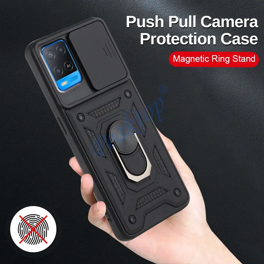 Противоударные чехлы-подставки с кольцом для OPPO A54 4G, нажимная защита для камеры, задняя крышка телефона, оболочка, чехлы для O PPO A 54 54A 6,51"