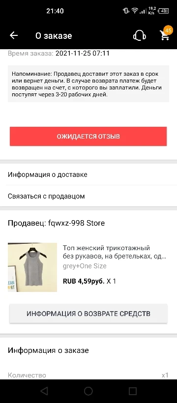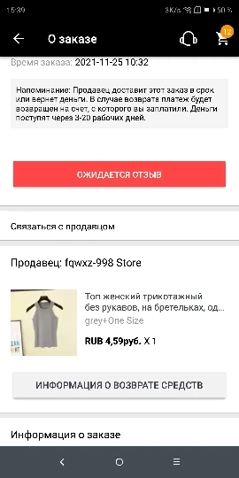 продавец не отправил заказ, пришлось делать возврат