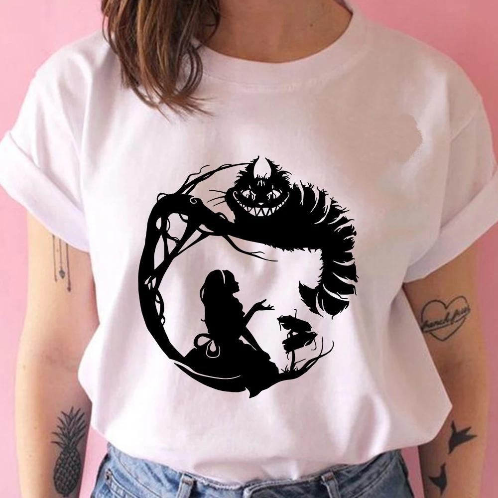 Женские футболки с большим ртом Чеширского Кота Disney, креативные ...