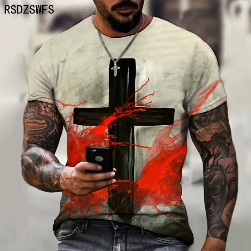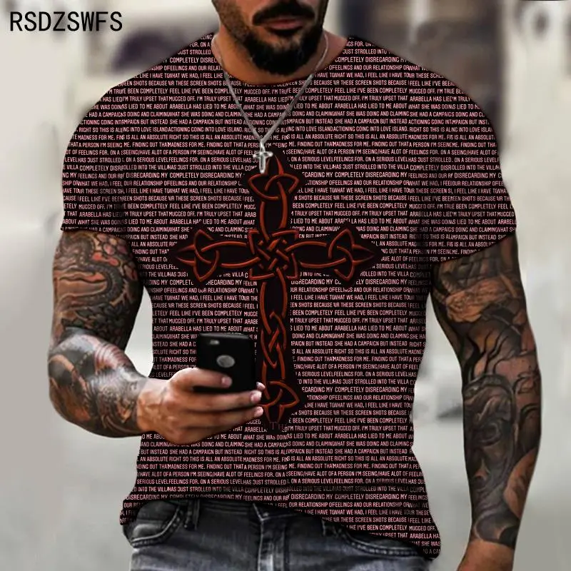 Мужская футболка с коротким рукавом, круглым вырезом и 3D-принтом, ...