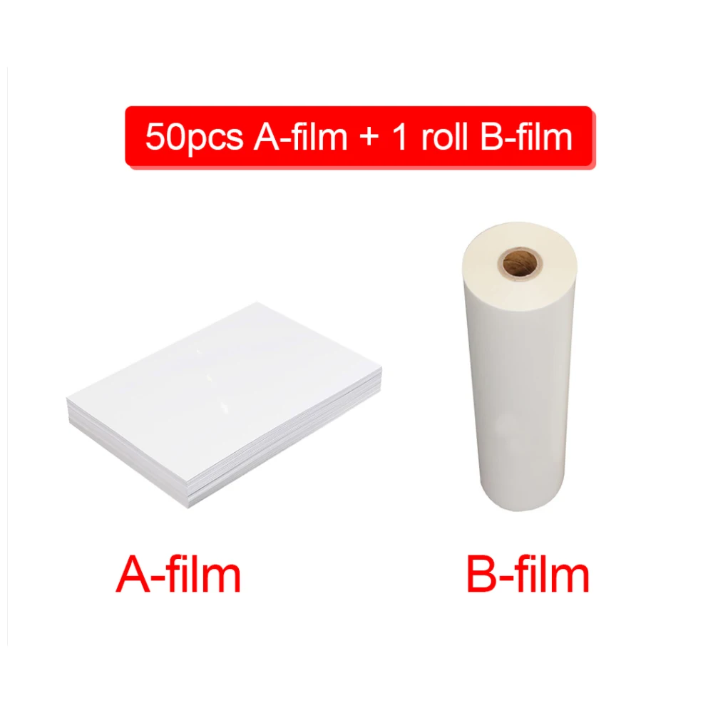 DTF пленка: 50 шт. пленка (30*40 см) + 1 рулон B пленка (30 см * 50 м)