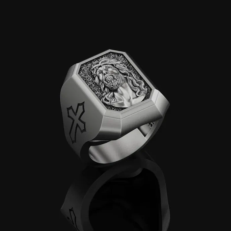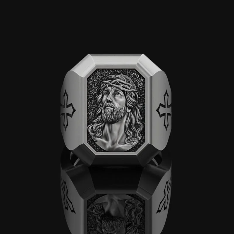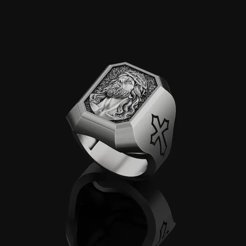 винтаж кольца Классическое мужское кольцо с изображением Иисуса серебряные черные мужские аксессуары кольца в винтажном стиле эмо оптовая продажа Винтажное кольцо мужские ювелирные изделия Готическая Индия Роскошные