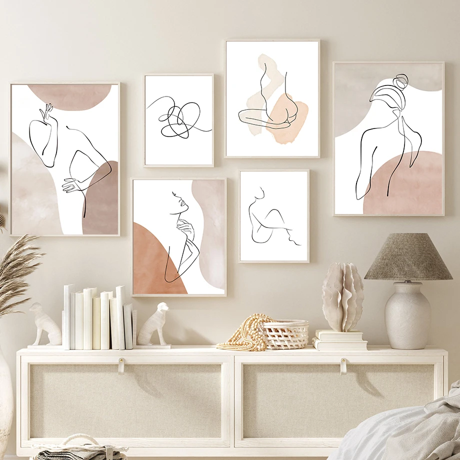 Настенная живопись на холсте, современные линии, лицо, тело, девушка, цветные блоки, скандинавские плакаты и принты, настенные картины для декора гостиной