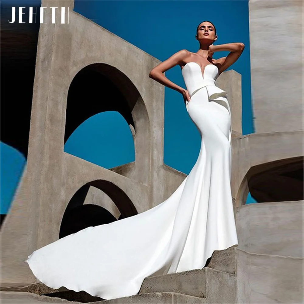 Атласные пляжные свадебные платья JEHETH с вырезом сердечком и юбкой-годе плиссированные платья с открытой спиной для принцессы Бохо свадебвечерние платья