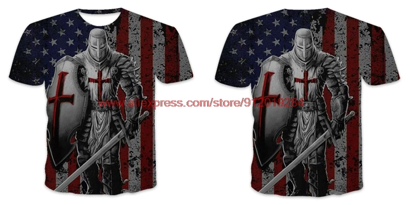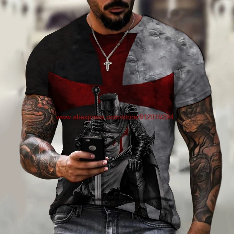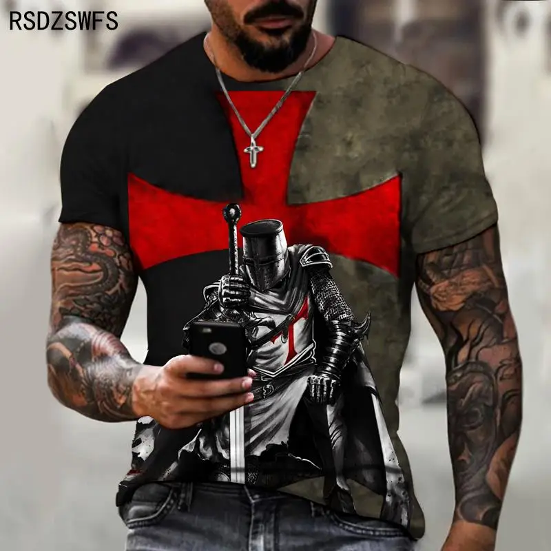 Футболка мужская с 3D принтом, с рисунком самурая, рыцари, темплар,...