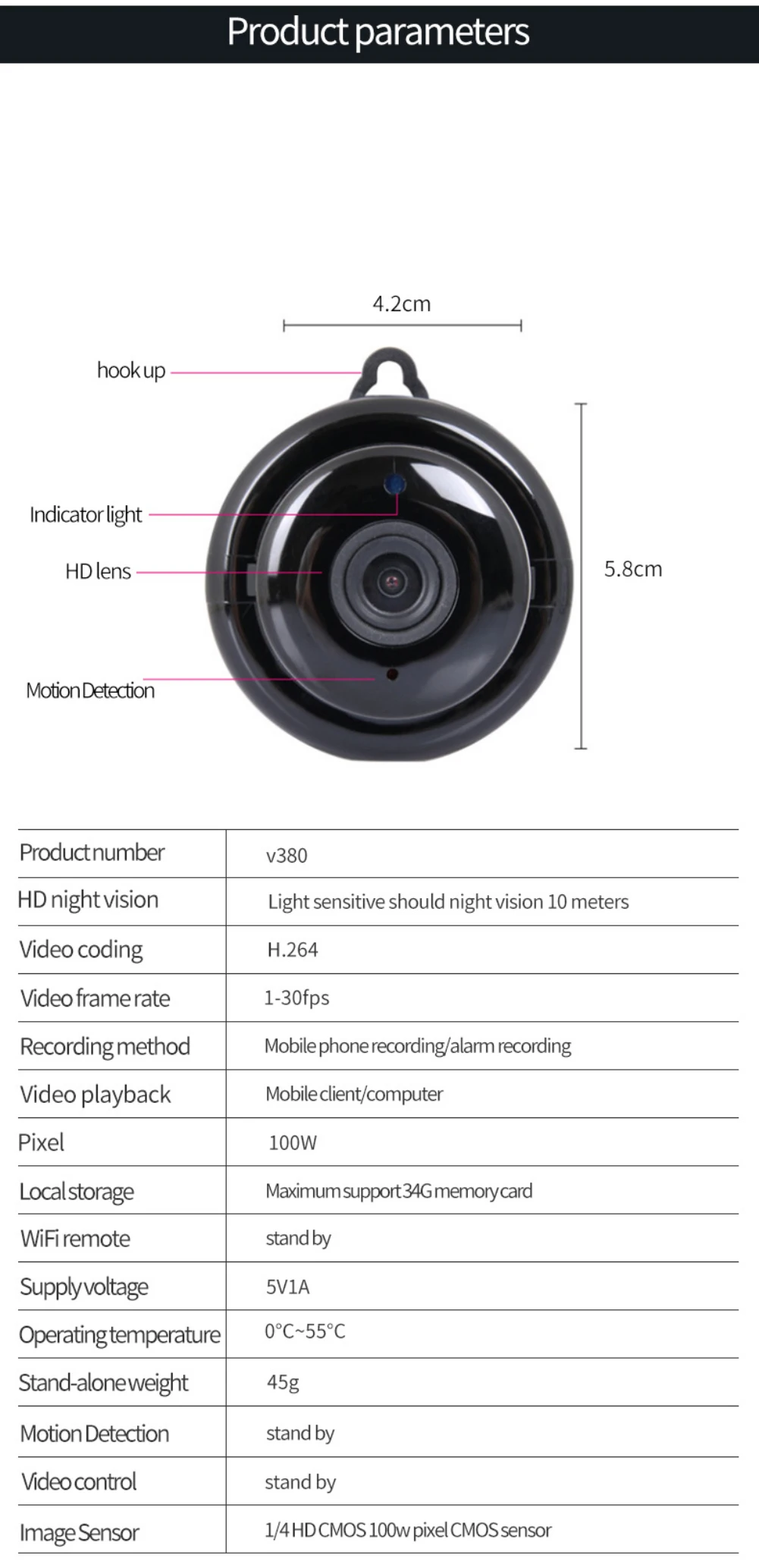 -ИК Ночное и обнаружение движения Сигнализация: Эта мини-камера поддерживает несветящаяся ночь с ИК-подсветкой, может записывать четкое видео даже в темной среде. И после обнаружения движения, он отправит вам уведомления, чтобы не пропустить важные вещи.