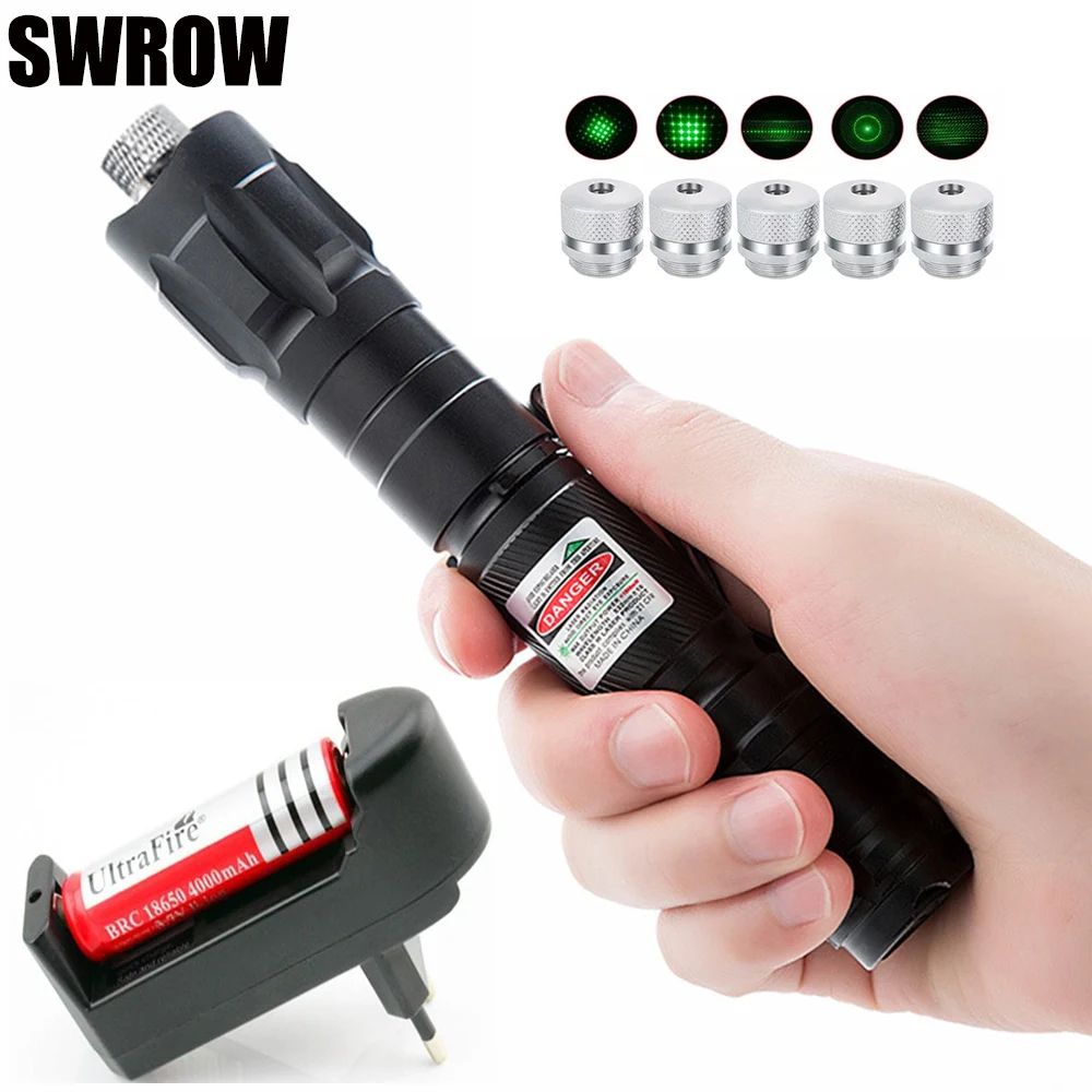 Мощная зеленая лазерная указка 8000 м Видимый светильник регулируемый фокус 532нм 650нм зеленый/красный лазерный прицел для охоты 5 мВт портативный лазер