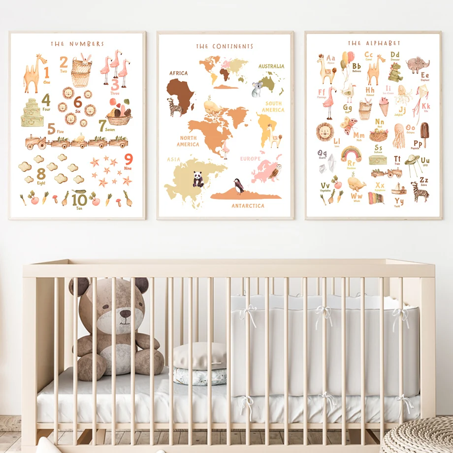 Солнечная система Карта континента животные Алфавит цифры скандинавские постеры и принты художественная живопись холст настенные картины декор для детской комнаты
