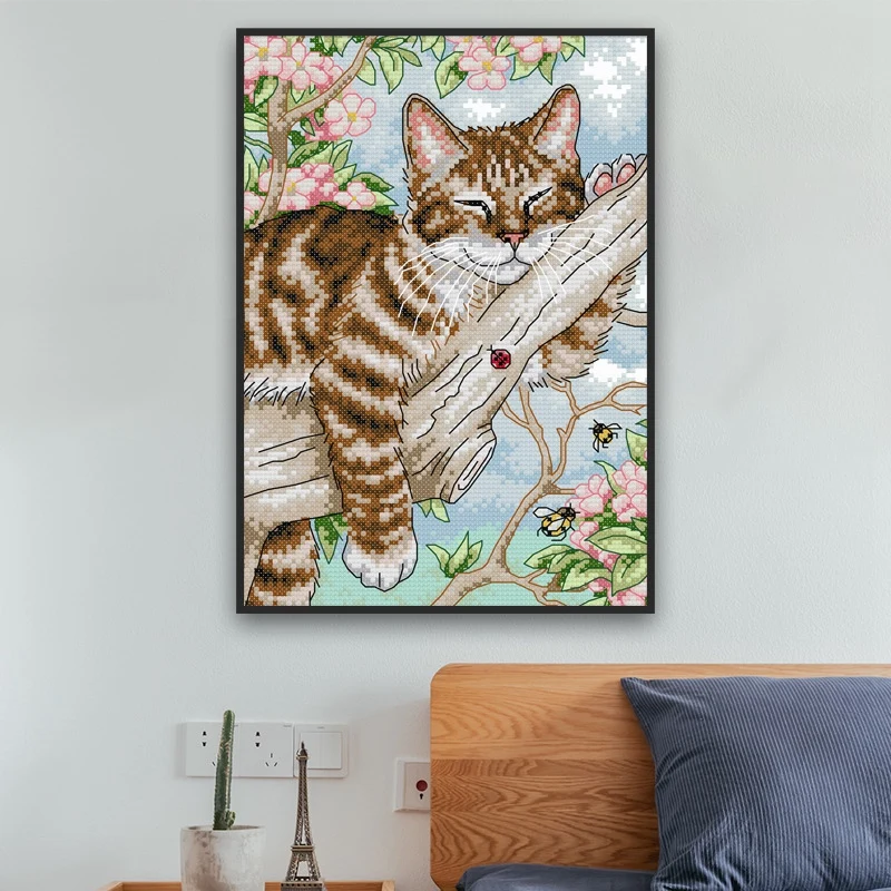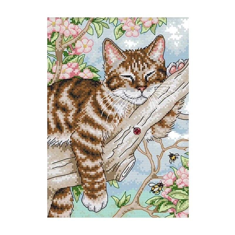 Наборы для вышивки крестиком 11CT штампованная вышивка стартовый набор для начинающих с предварительно напечатанным рисунком-ленивый кот на дереве