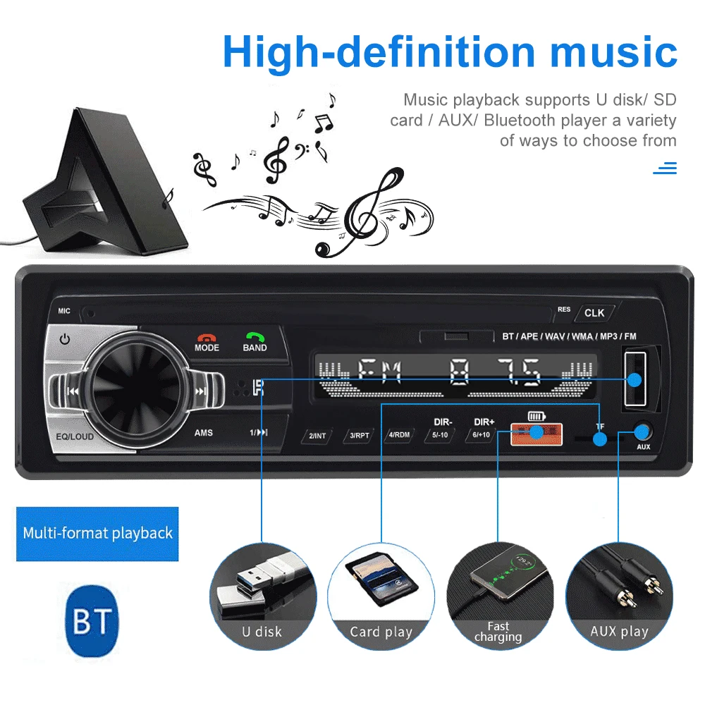 Напряжение: 12 В постоянного токаЧип декодирования: Jieli4900Тип экрана: LCD-VAРадио диапазон: FMРадиочип: Встроенный чипВыходная мощность: 45 ВтРабочая температура:-10 ℃ ~ 60 ℃Название Bluetooth: Автомобильный BTЧип усилителя мощности: TDA7377Радиочастота: 87,5 ~ 108 МГцTf-карта: tf-картаGPS карта: не поддерживаетВерсия USB: 2,0Быстрая зарядка: ПоддержкаКрасочный светильник s: Красный светильникИзменение логотипа автомобиля: не поддерживаетсяФормат аудио: MP3/WMA/WAV/FLACКлючевое слово заводской настройки: не поддерживаетФормат видео: не поддерживаетФормат изображения: не поддерживаетсяПорт RCA: 4-канальный аудио выходУпаковочный лист