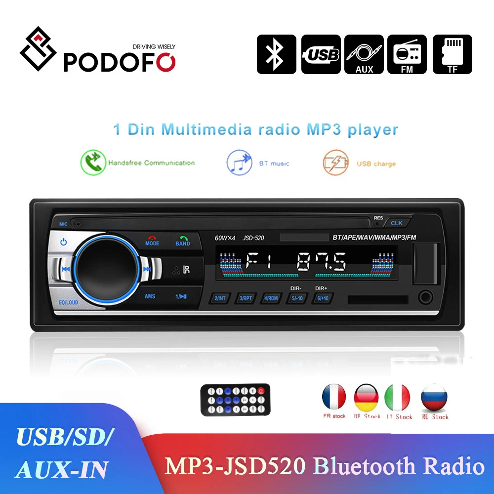 Авто радио Podofo 1 din автомобильное радио JSD-520 стерео Bluetooth аудио MP3 плеер рекордер usb sd aux вход oto teypleri авто радио