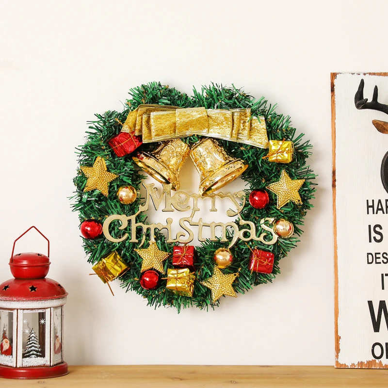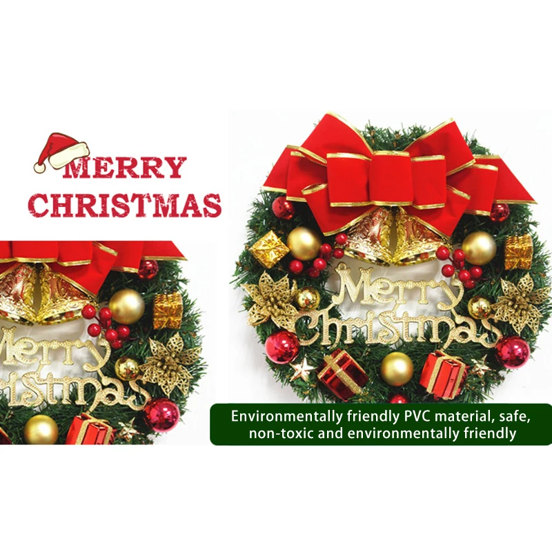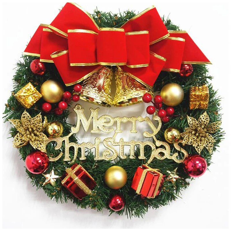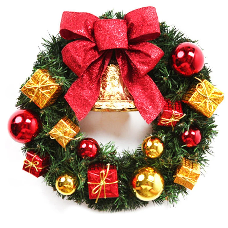 Рождественский венок с бантом, Рождественское украшение, дверной висячий венок, украшение, гирлянда, новогодние украшения, подарок для домашнего декора