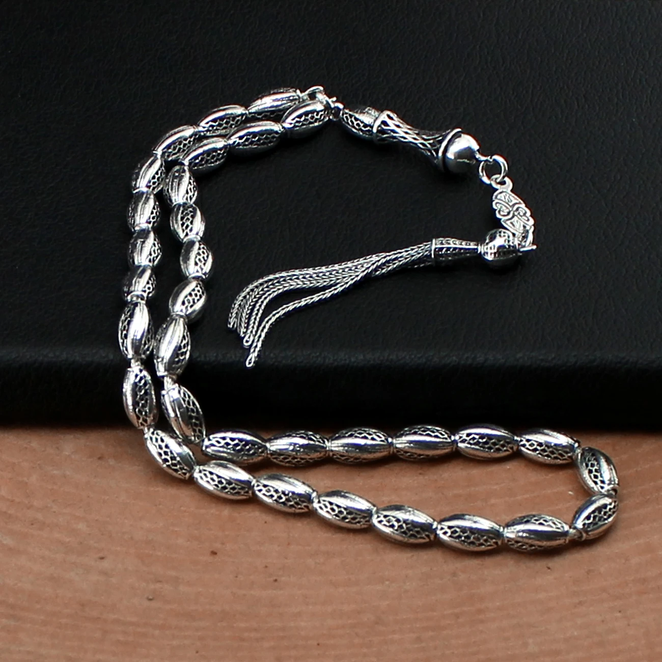 Pukka Real Стерлингового Серебра 925 33 Бусины Для Мужчин Четки Высокое качество Tasbeeh Молитва Мусульманский Браслет Misbah Аксессуар Из Бисера Подарочная Резка