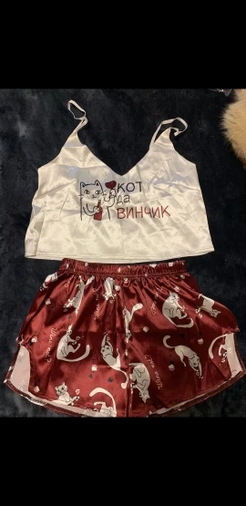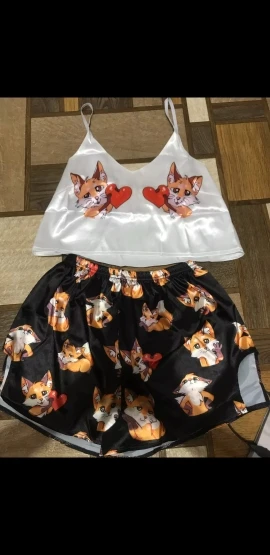 Пижама женская атласная с V-образным вырезом и принтом лисы