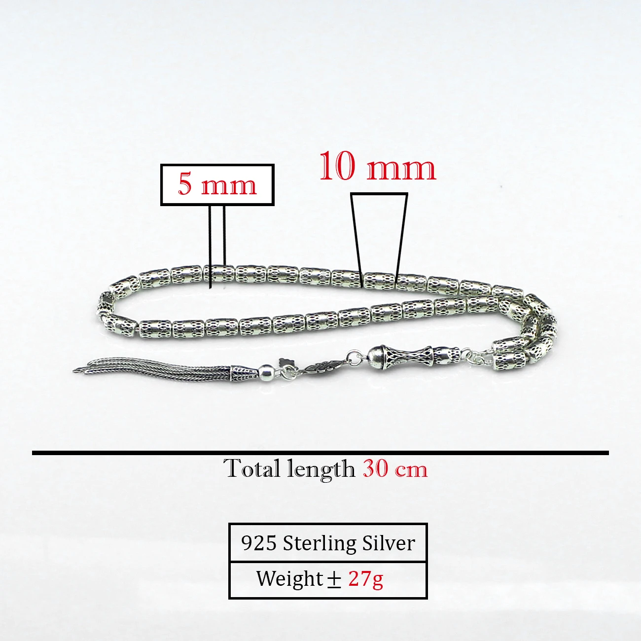 Pukka Real Стерлингового Серебра 925 33 Бусины Для Мужчин Четки Высокое качество Tasbeeh Молитва Мусульманский Браслет Misbah Аксессуар Из Бисера Подарочная Резка