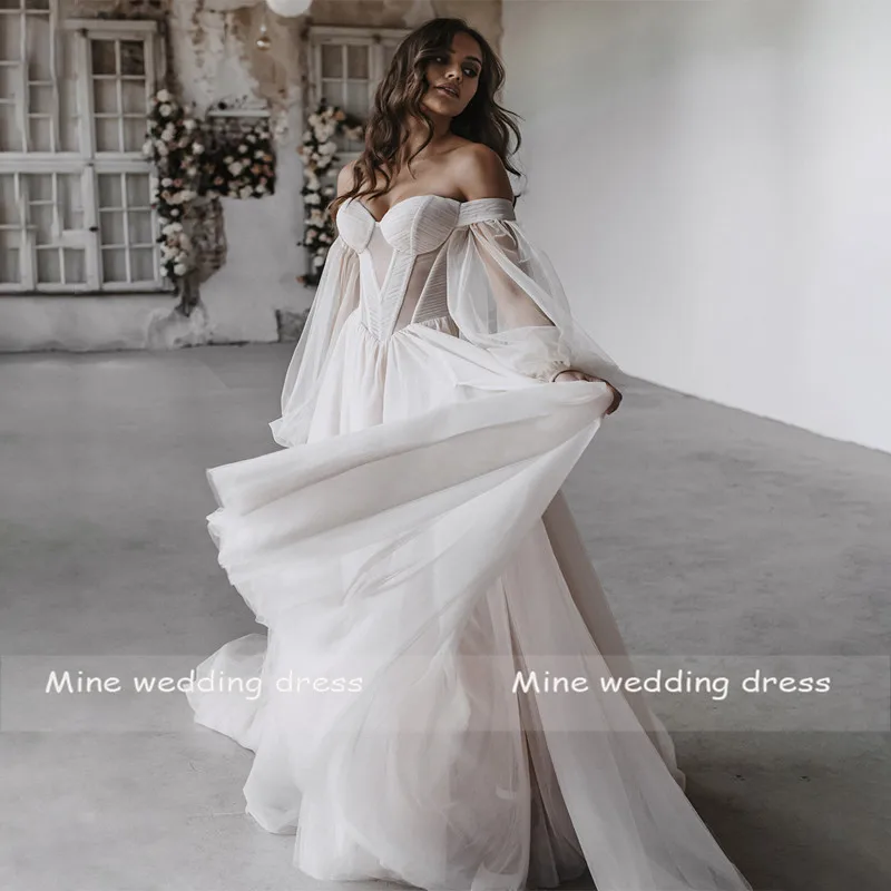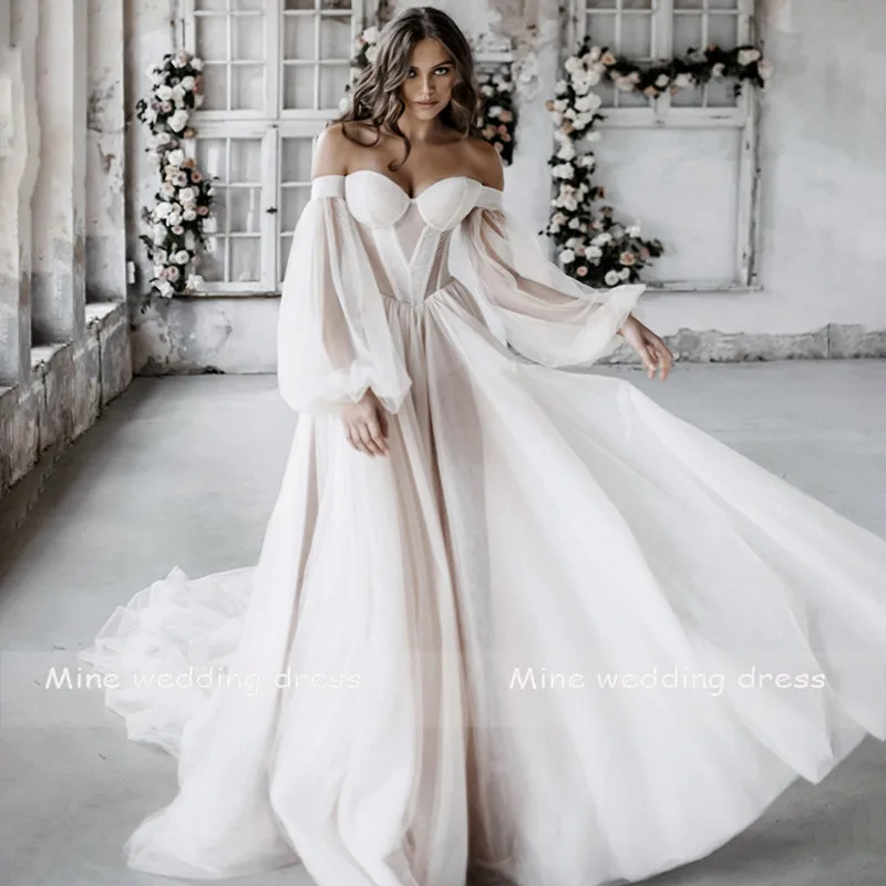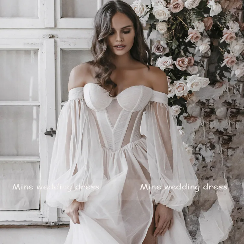 Новое поступление, милое прозрачное 34 Пышное сексуальное платье из тюля с открытыми плечами, свадебное платье