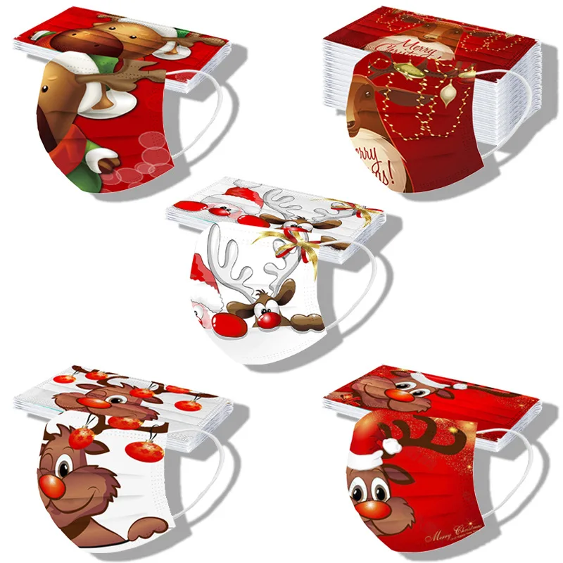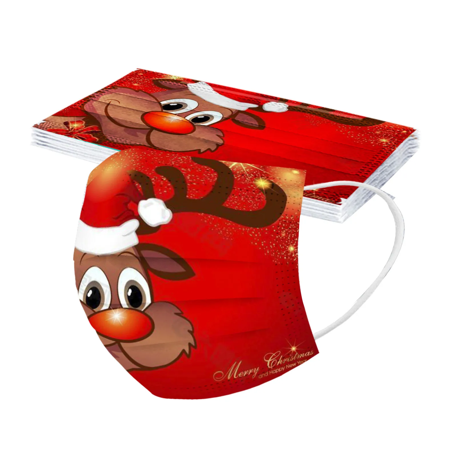 Цветная одноразовая Защитная маска для взрослых с рисунком красного оленя, трехслойная маска, Рождественская маска