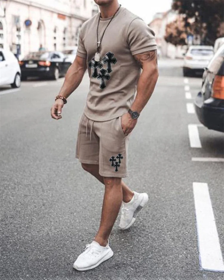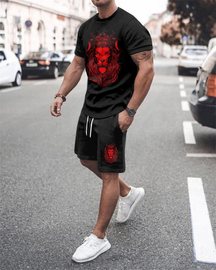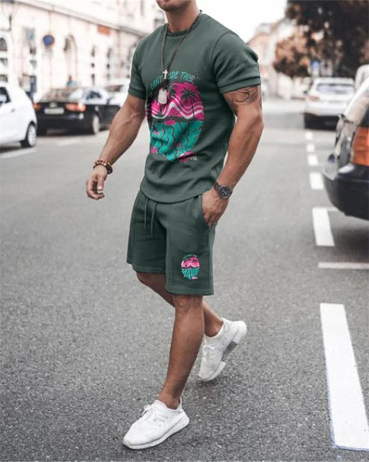 2022 Новая трендовая футболка с 3D принтом и шортами, костюм для мужчин с текстурой граффити, комплект из двух предметов, спортивный костюм с круглым вырезом