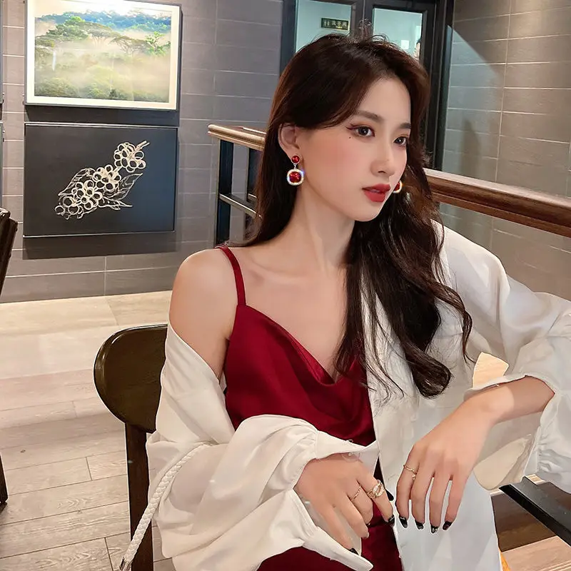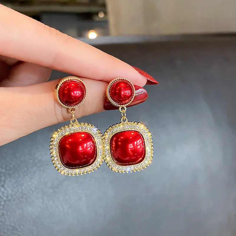 Новые женские Серьги на осень и зиму, свадебные модные ювелирные украшения с красными кристаллами, металлические Серьги-цепочки, милые Серьги для девушек, 2022, бижутерия для вечеринки, Серьги