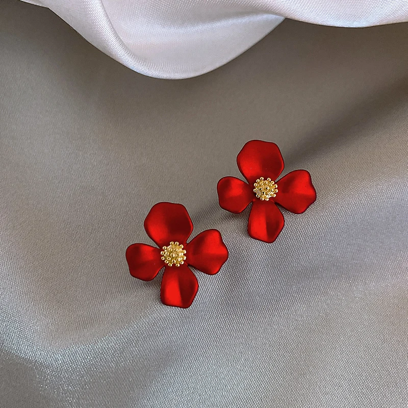 Элегантные геометрические серьги-гвоздики красного цвета с шариком,...