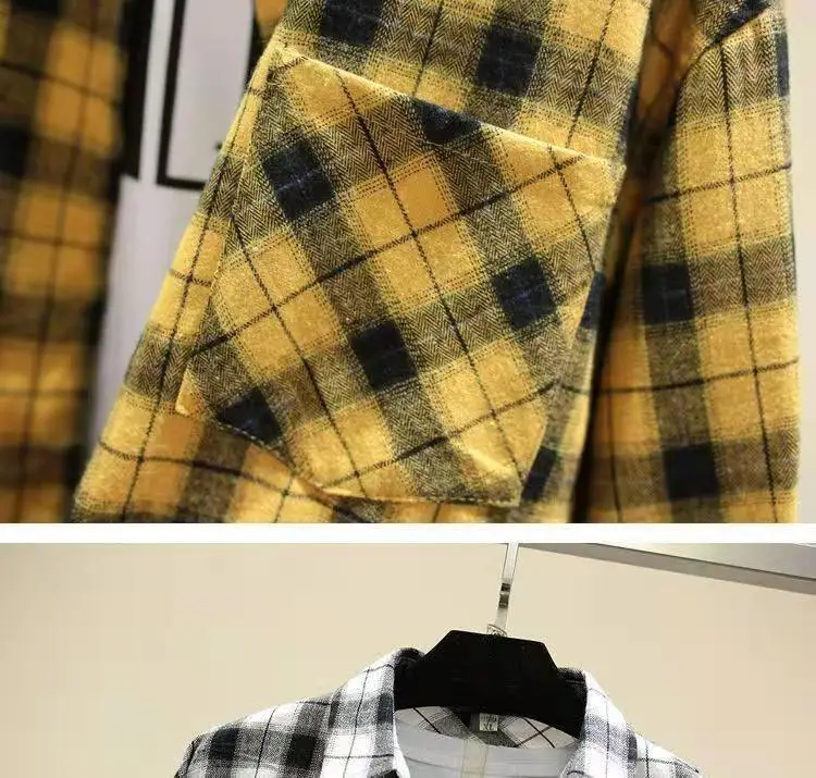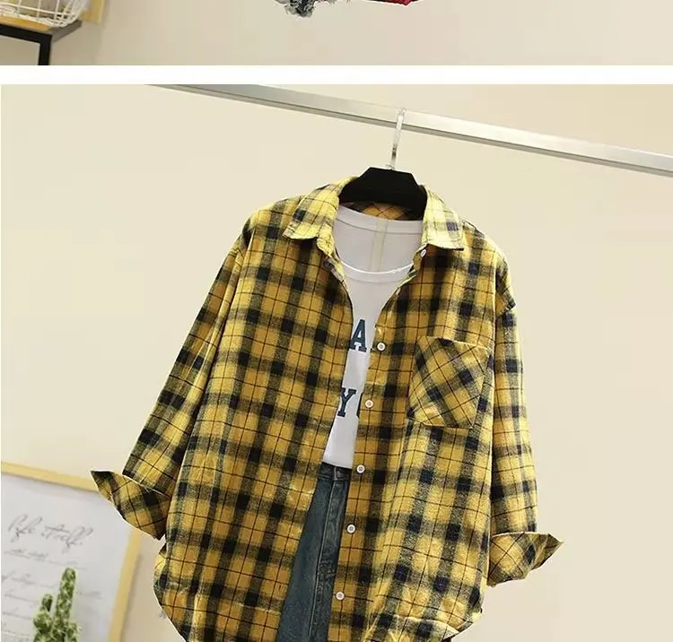 Рубашка в клетку, пальто, Женский Осенний Топ, свободная блузка с д...