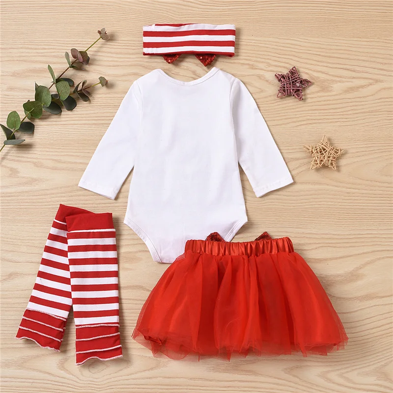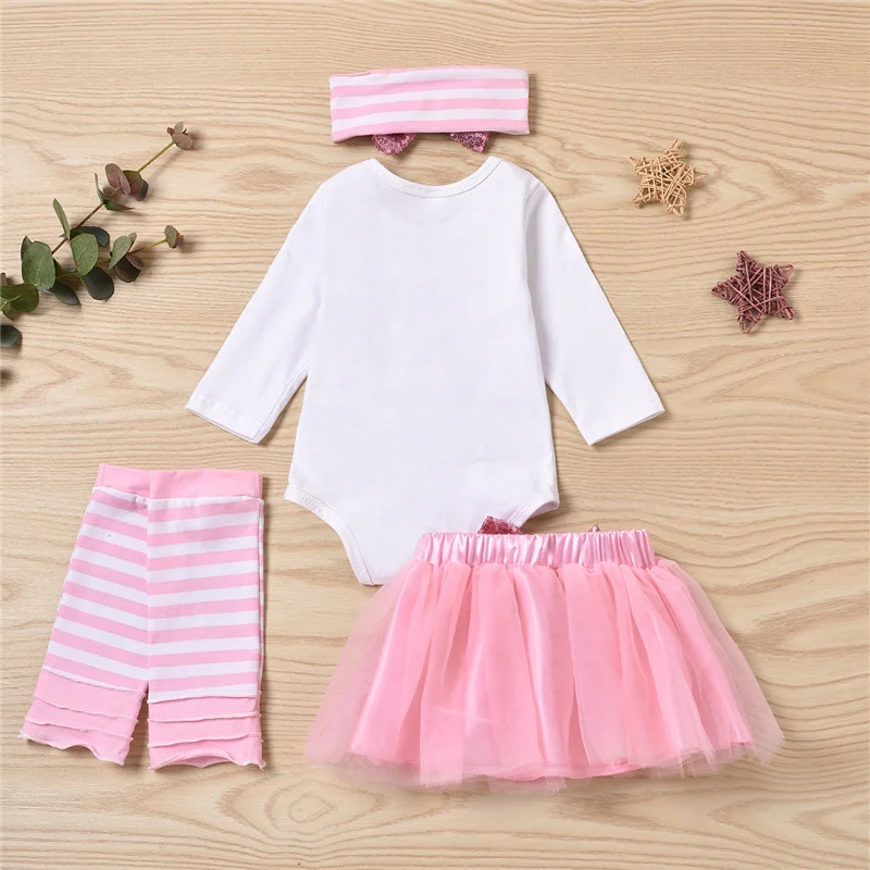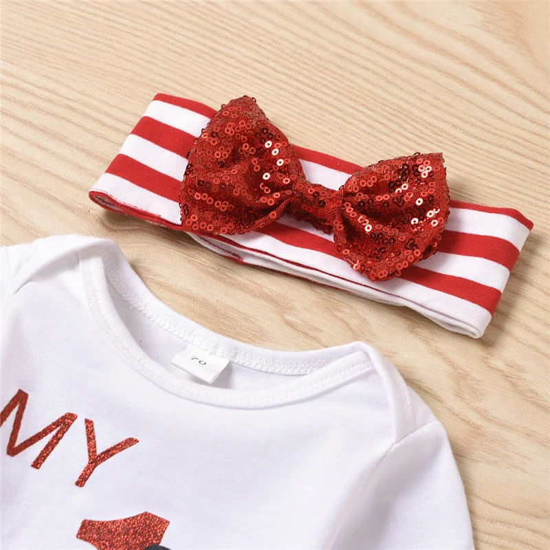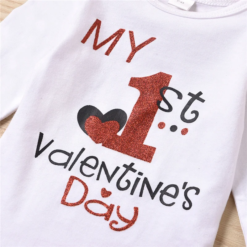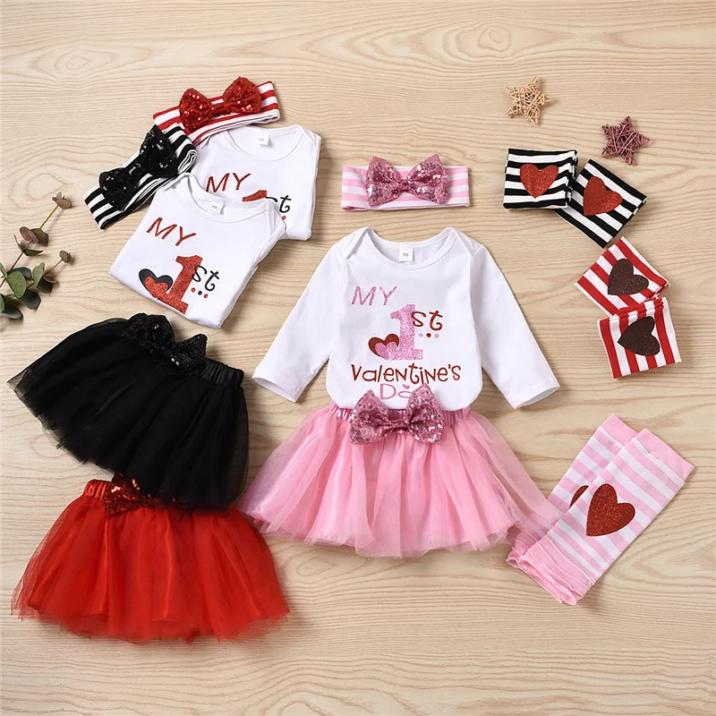 Костюм Мой первый день святого Валентина для новорожденных девочек, комбинезон с длинными рукавами и надписью + короткая юбка с бантом + повязка на голову + гетры