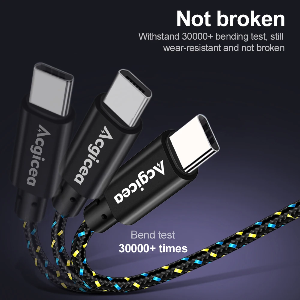 Кабель USB Type C Acgicea для Samsung S20 S21 Xiaomi, нейлоновый быстрой зарядки, шнур зарядного устройства для Android, кабель Micro USB