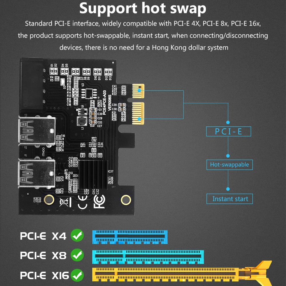 PCIe от 1 до 4 PCI-express 16X слоты, Райзер-карта PCI-E от 1X до E...
