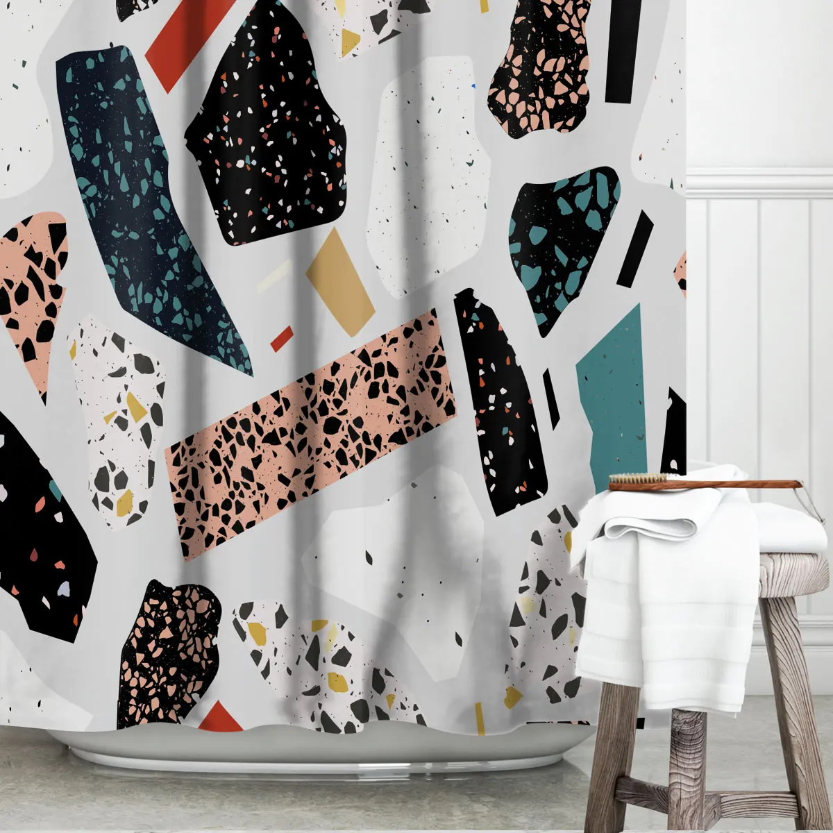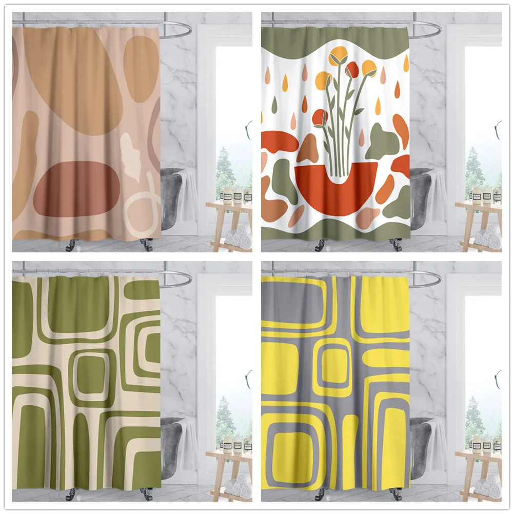 Винтажная занавеска для душа с цветными блоками и цветами, водонепроницаемая моющаяся занавеска для домашнего декора в ванной, уборной, ванной комнаты, занавеска для душа, ткань