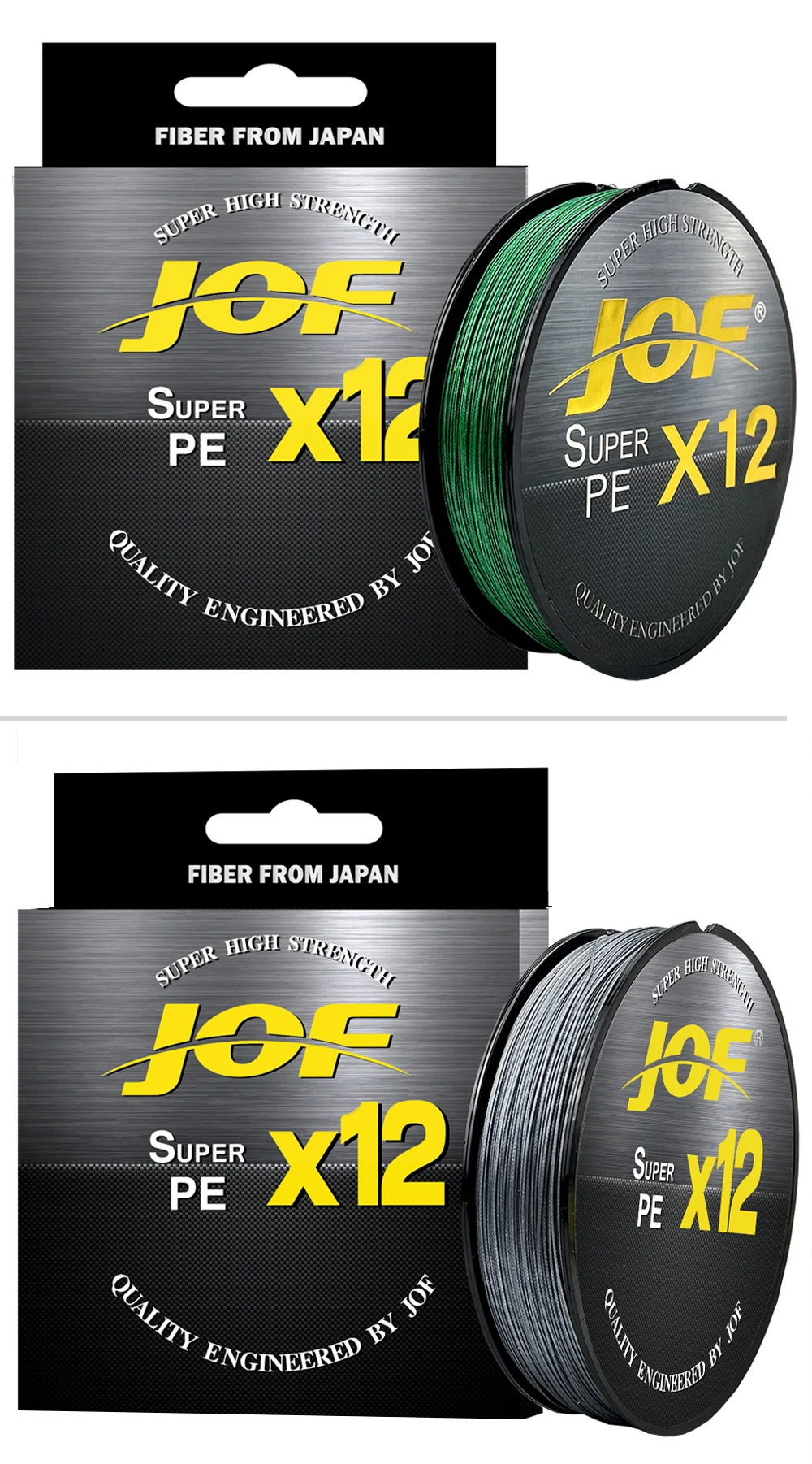 Усиленная 12-жильная плетеная рыболовная леска JOF, суперпрочная многонитевая Тонкая леска 25-92 анг. Фунт., приманка для заброса, 500 м, 300 м, 100 м