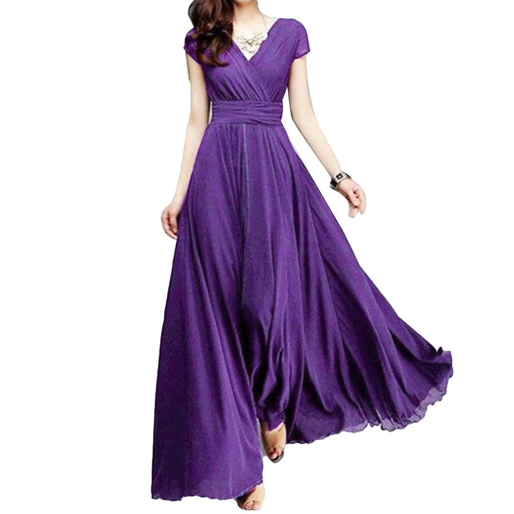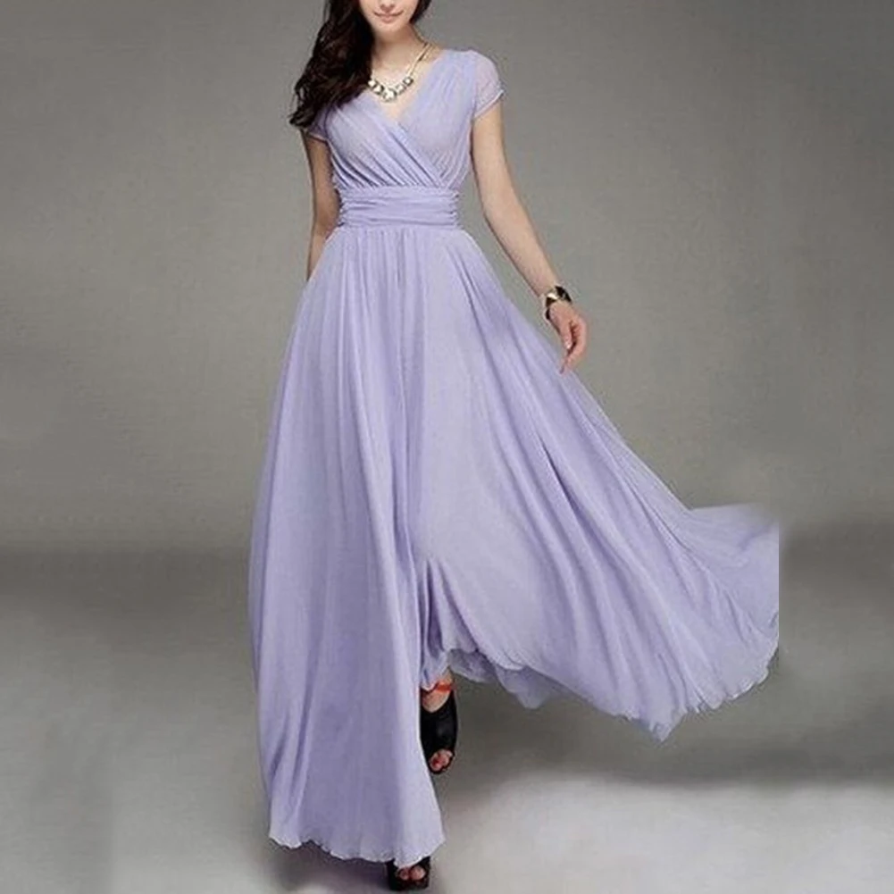 Богемное однотонное элегантное женское платье, свадебное платье с V-образным вырезом и коротким рукавом, облегающее Макси-платье, сексуальное женское платье