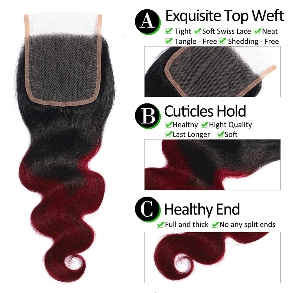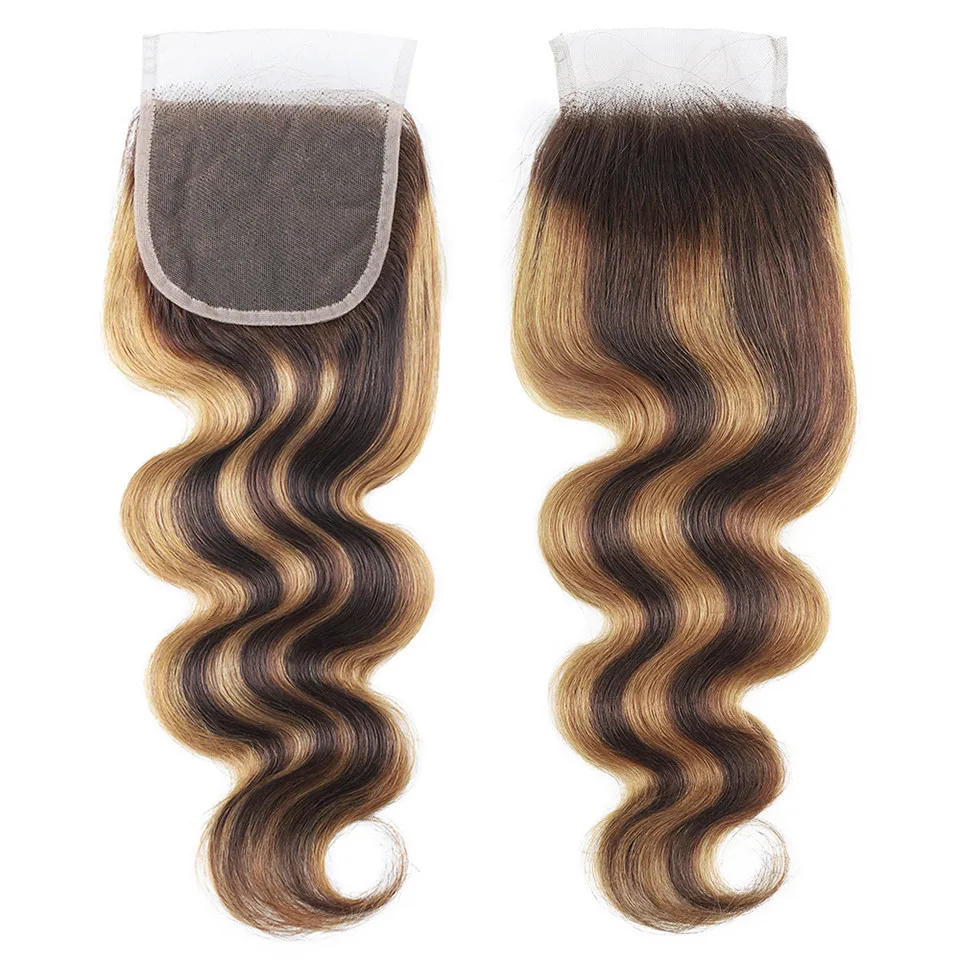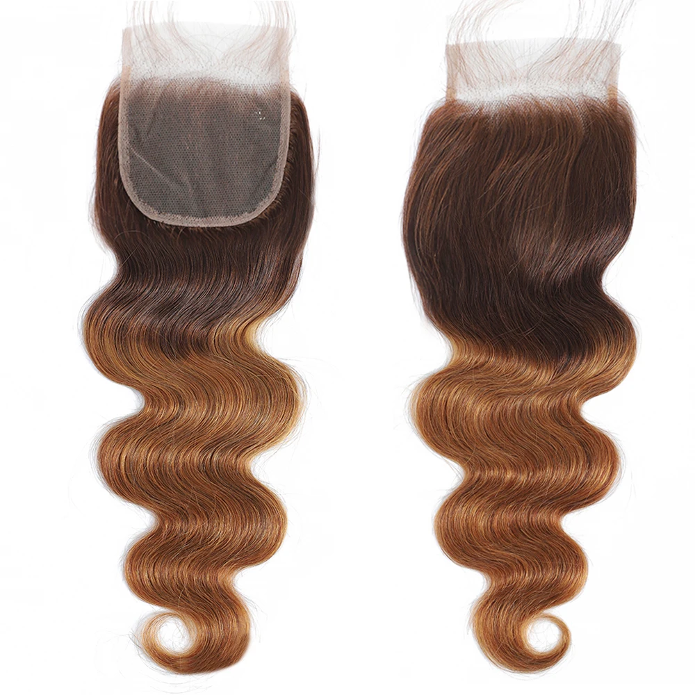Пряпряди с кружевной застежкой 4x4 блонд коричневый бордовый Омбре бразильские неповрежденные цветные человеческие волосы 34 пряди застежкой