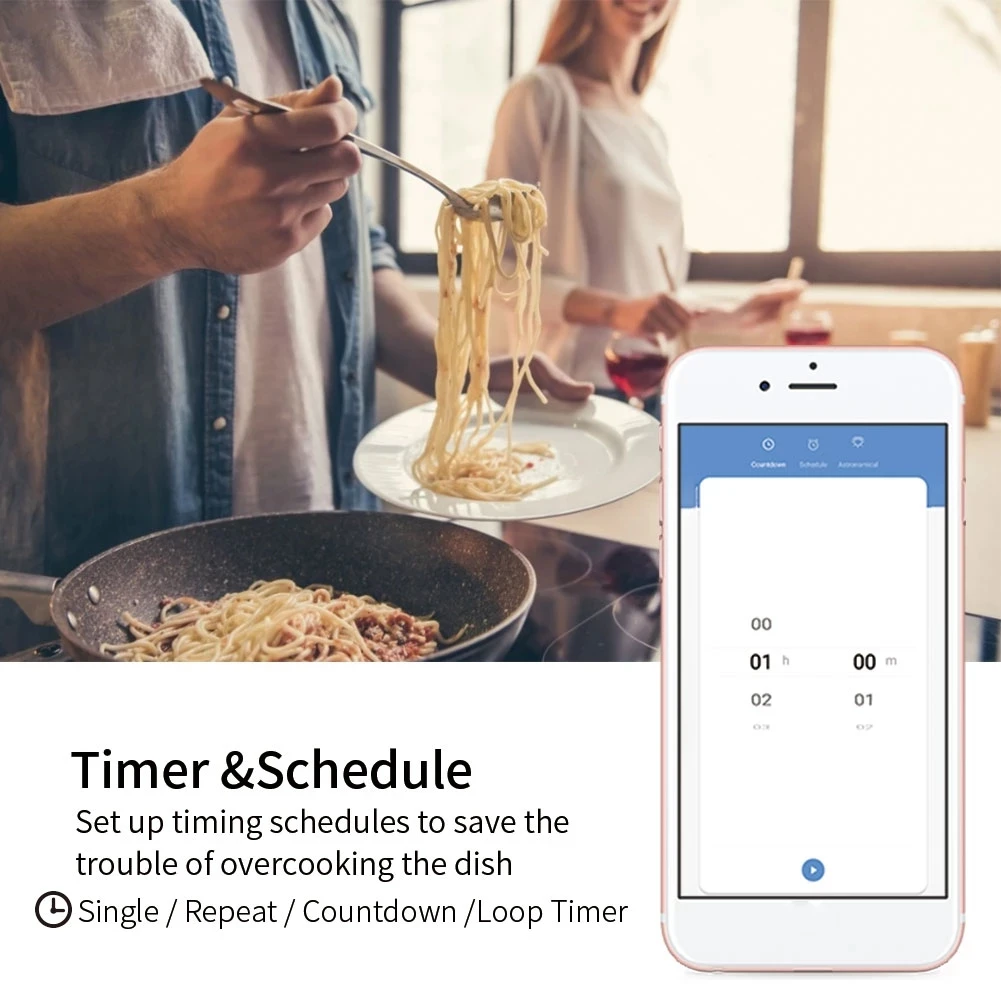 Совместим с любыми бытовыми приборами (100-240 В переменного тока, максимальный ток 10А, максимальная мощность 2200 Вт). Небольшой модуль имеет возможность DIY для пользователей с базовыми знаниями электрика