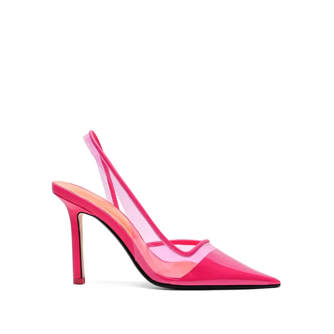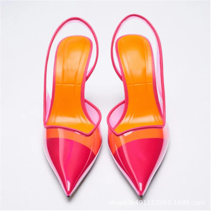 Женские прозрачные туфли на шпильке, розово-красные туфли с острым носком, на высоком каблуке, для выпускного вечера
