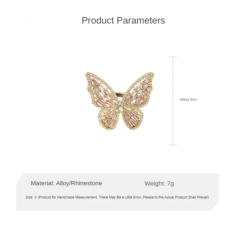 Женское кольцо с бабочкой и цирконом, открытое большое кольцо с драгоценным камнем, Очаровательная бижутерия для свадебной вечеринки, подарок, Прямая поставка