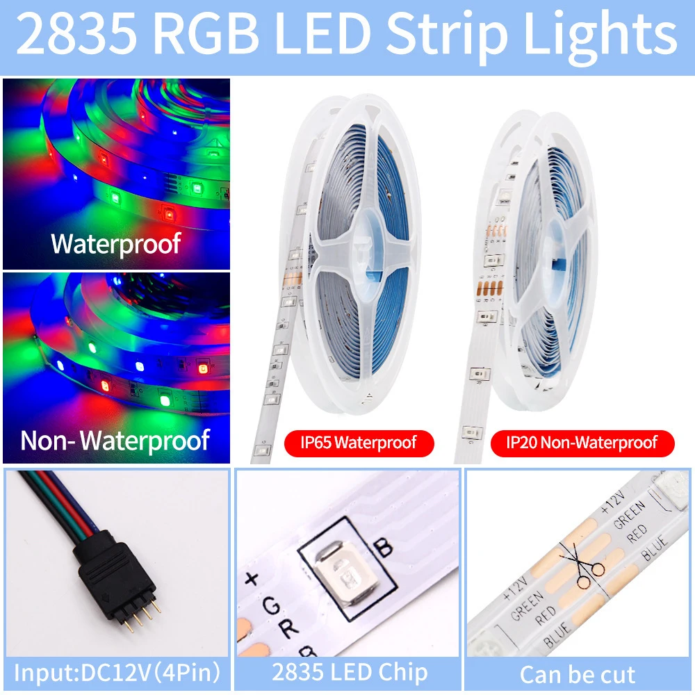 Светодиодные ленты 2835 RGB для декора комнаты, кухни, свадьбы, спальни, бытовой техники, телевизора, неоновый ночник