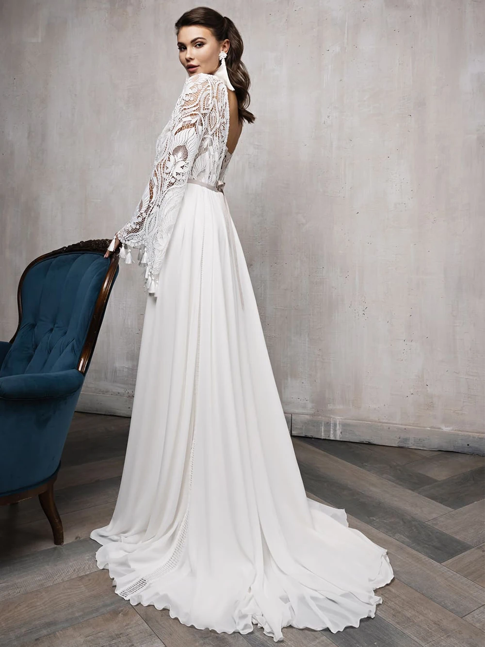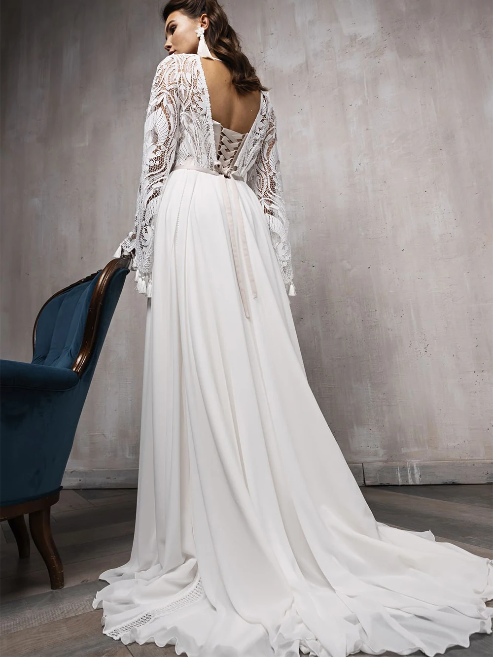 Пляжное свадебное платье Roycebridal в стиле бохо, изготовленное на заказ, кружевной корсет принцессы с вырезами и длинными рукавами, с бретельками и открытой спиной