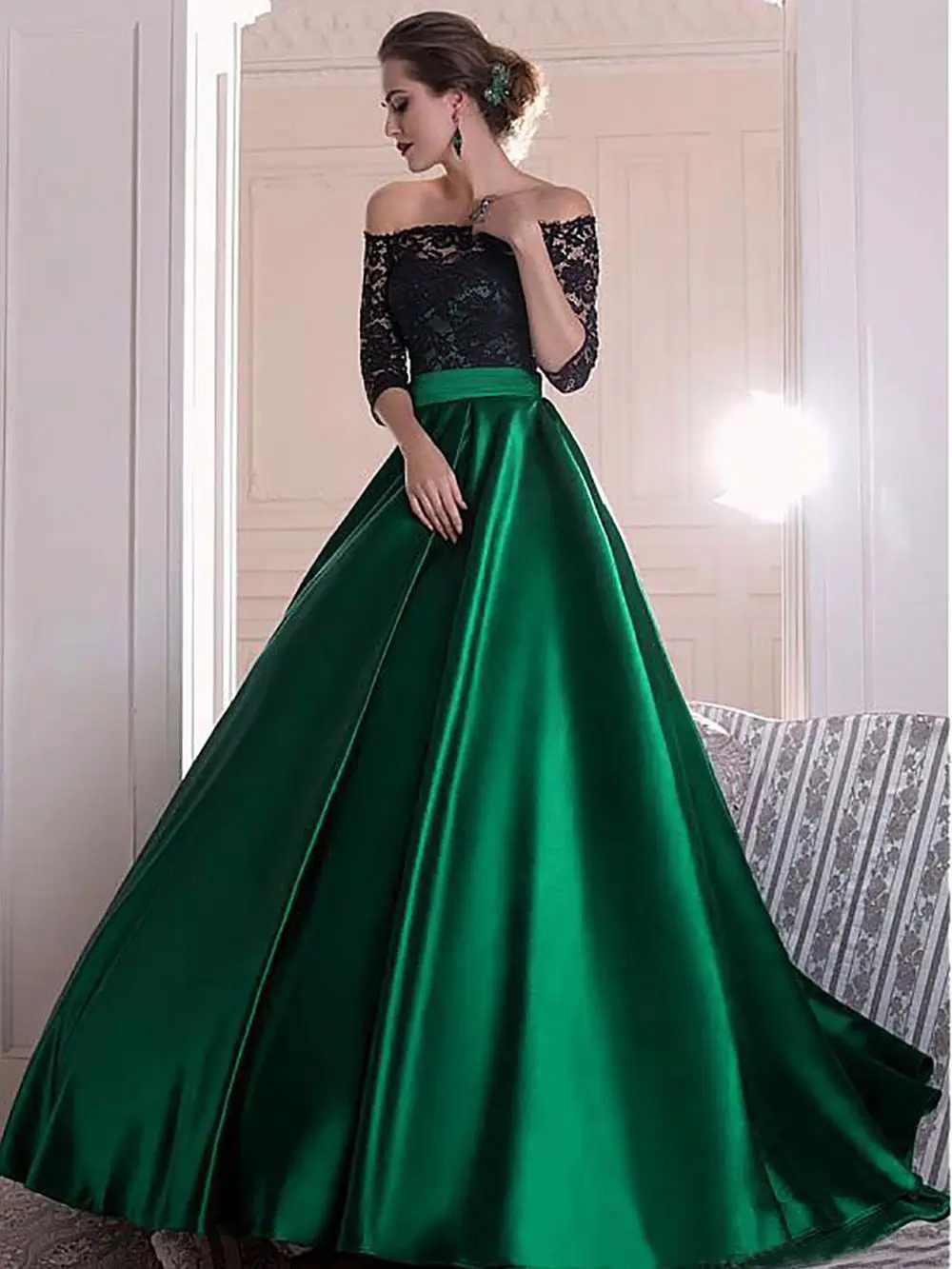 Женское вечернее платье, кружевное бальное платье с открытыми плечами и рукавом 34, атласное платье для выпускного вечера