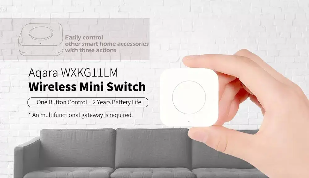 * Умный беспроводной переключатель Aqara-это простое и портативное одно кнопочное устройство. Однако он может управлять многими смарт-устройствами. Благодаря беспроводному подключению ZigBee этот умный переключатель может использоваться как дверной звонок, кнопка переключения, пульт дистанционного управления. Он очень удобен для использования. Более того, клей на обратной стороне и маленький размер позволяют его положить или приклеить в любом месте.