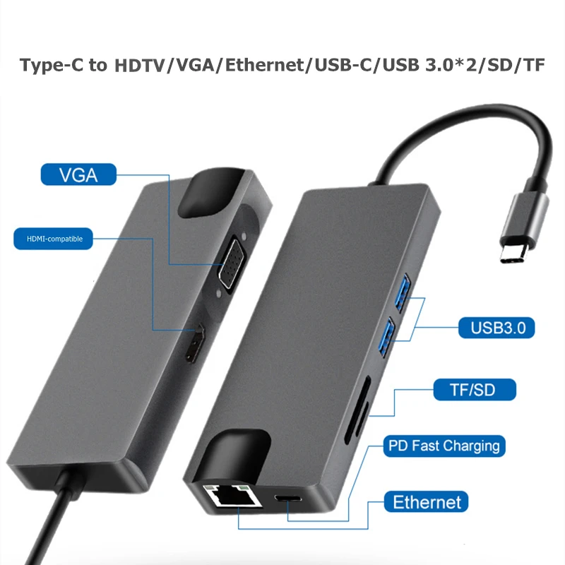 Устройство чтения карт памяти TRUMSOON Type-C к Lan RJ45 4K HDMI-совместимое VGA USB C 3,0 SD TF для Macbook Samsung S20 Dex Xiaomi 11 TV PS5