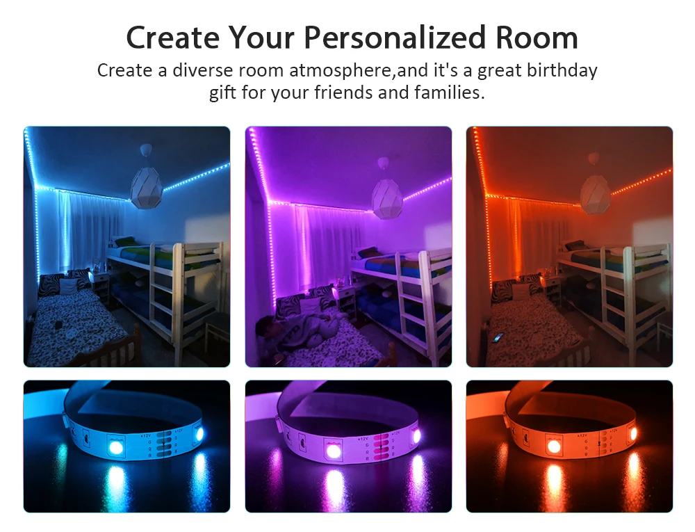 Светодиодный Bluetooth поддерживает функцию синхронизации, вы можете задать Светодиодный индикатор для включения/выключения в определенное время.Светодиодный светильник s для спальни автоматически создает идеальную атмосферу для вас, позволяя вам просыпаться в яркий светильник или спать в тусклом светильник.Светодиодный светодиодные полосы света телефон управления светодиодный Сделайте вашу повседневную жизнь умной и приятным.