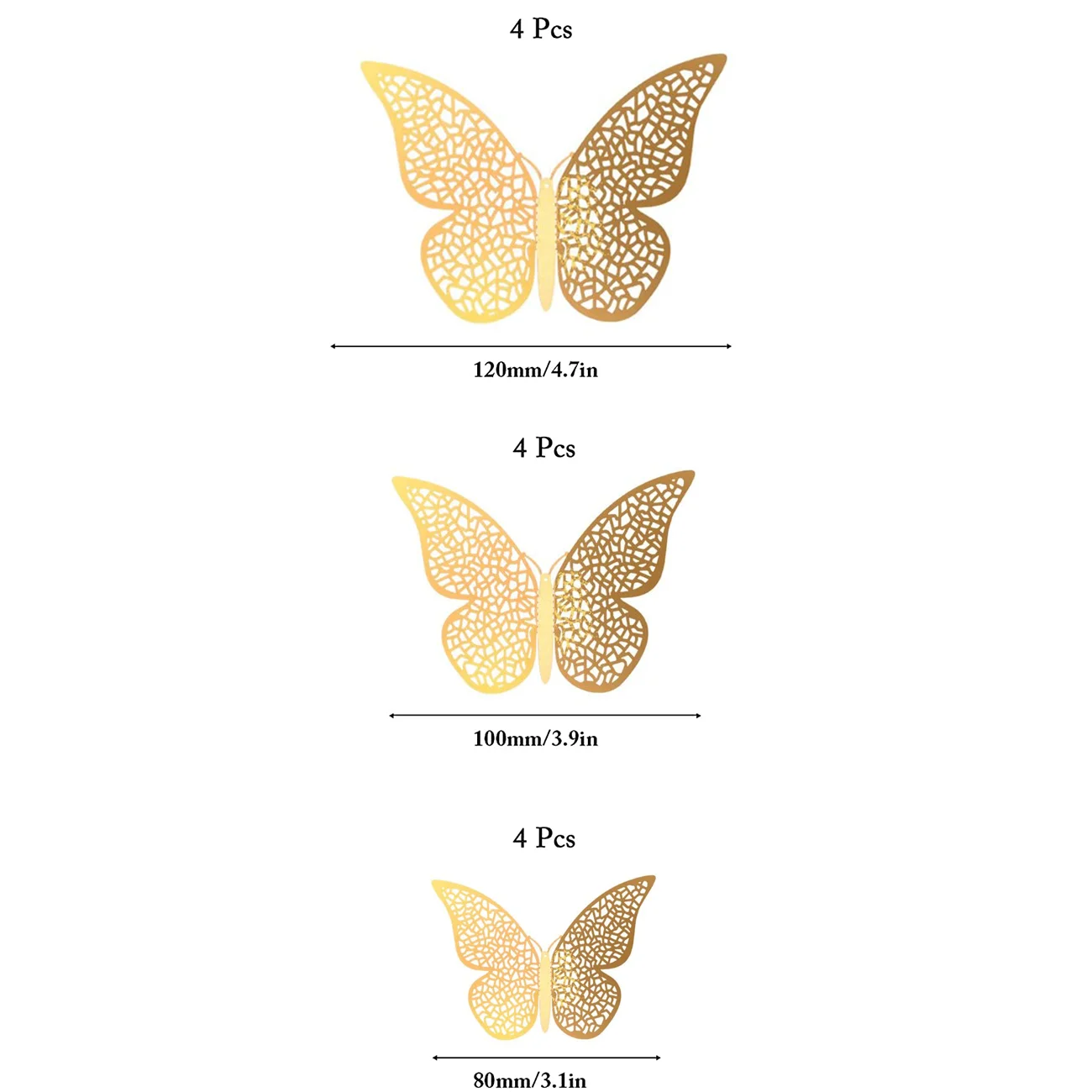 12 шт. украшения для торта в виде бабочки, золотые 3D пустотелые капкейки, детский фотографический фон