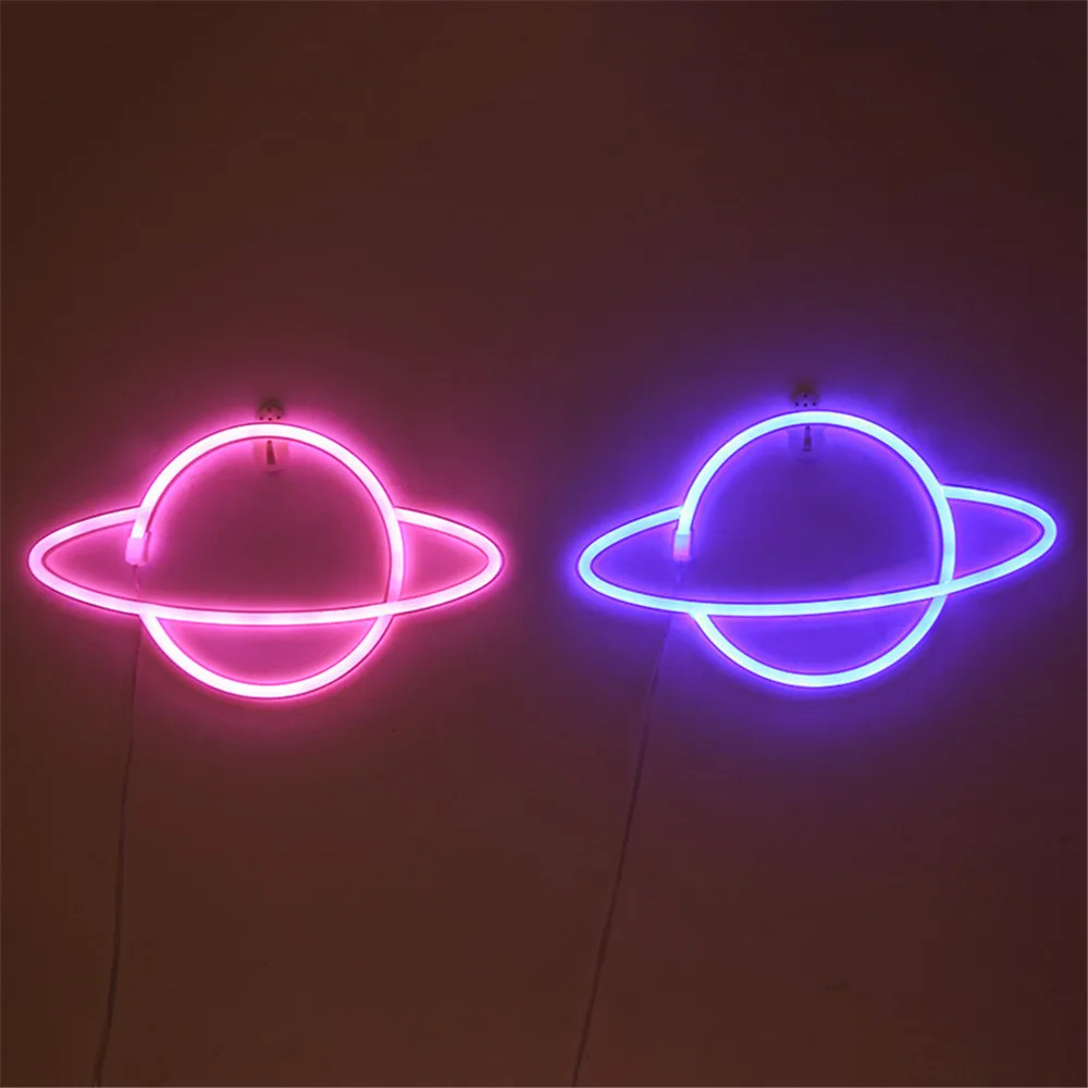 Светодиодная неоновая вывеска Планета ракета, декор для спальни, неоновая вывеска, ночник для комнат, настенный светильник для бара, вечеринки, с питанием от USB или аккумулятора