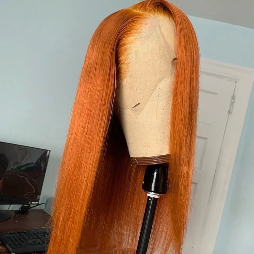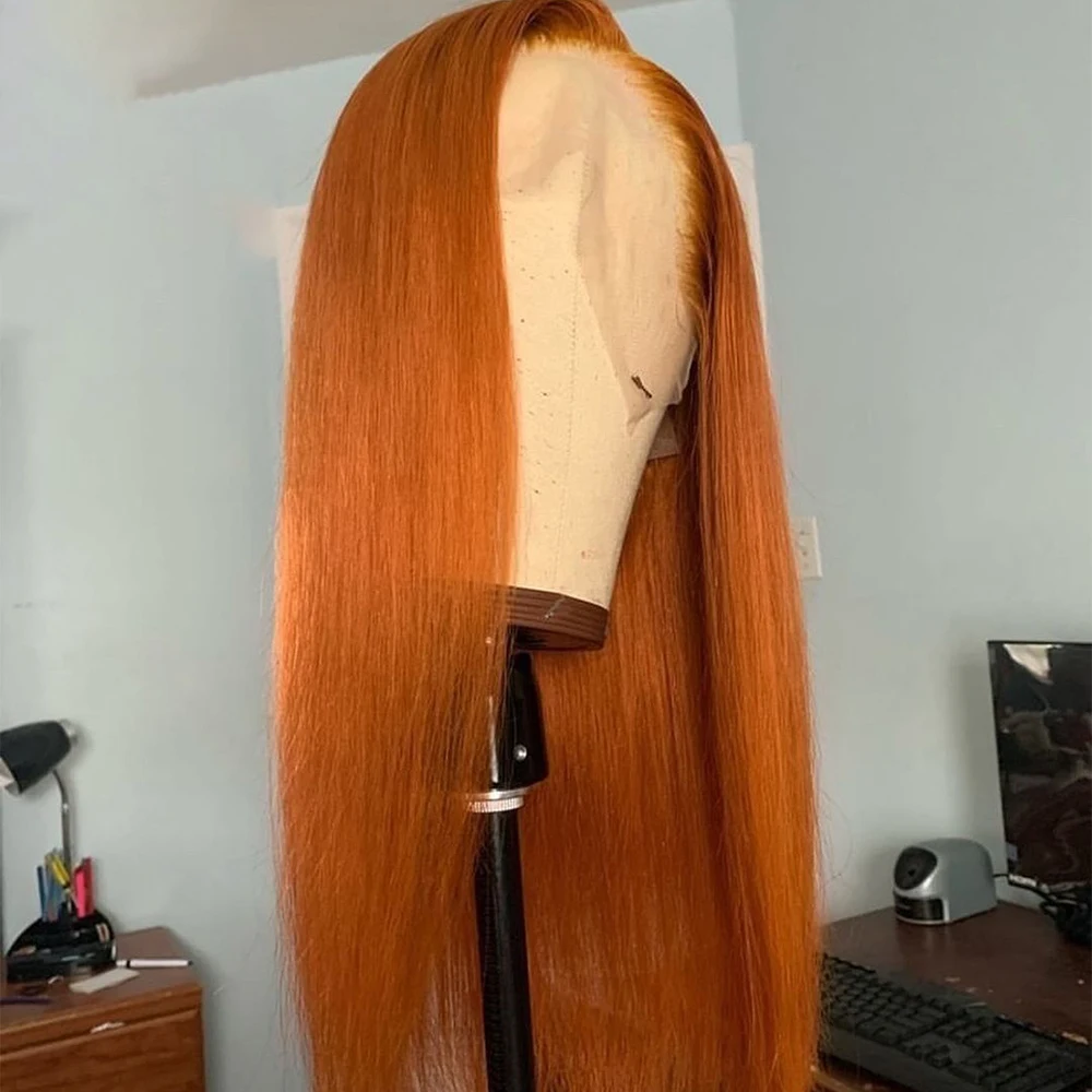 180% Плотность 26 дюймов длинный прямой имбирный Оранжевый Синтетический кружевной передний парик для черных женщин Babyhair Preplucked ежедневный Косплей