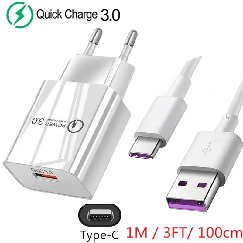 Зарядное устройство QC 3,0 USB, 18 Вт, 5 А, кабель для быстрой зарядки Huawei, Samsung, Xiaomi Redmi, Google Pixel 6 Pro, вилка стандарта ЕС и США
