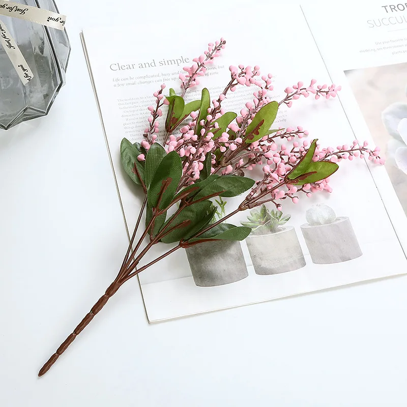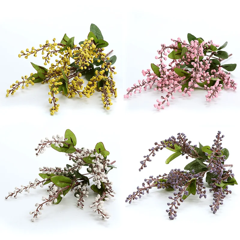 5 вилок искусственная Акация искусственный красный стебель с ягодами Pudica спрей вишня искусственный цветок из шелка Свадебная вечеринка Декор красный завод